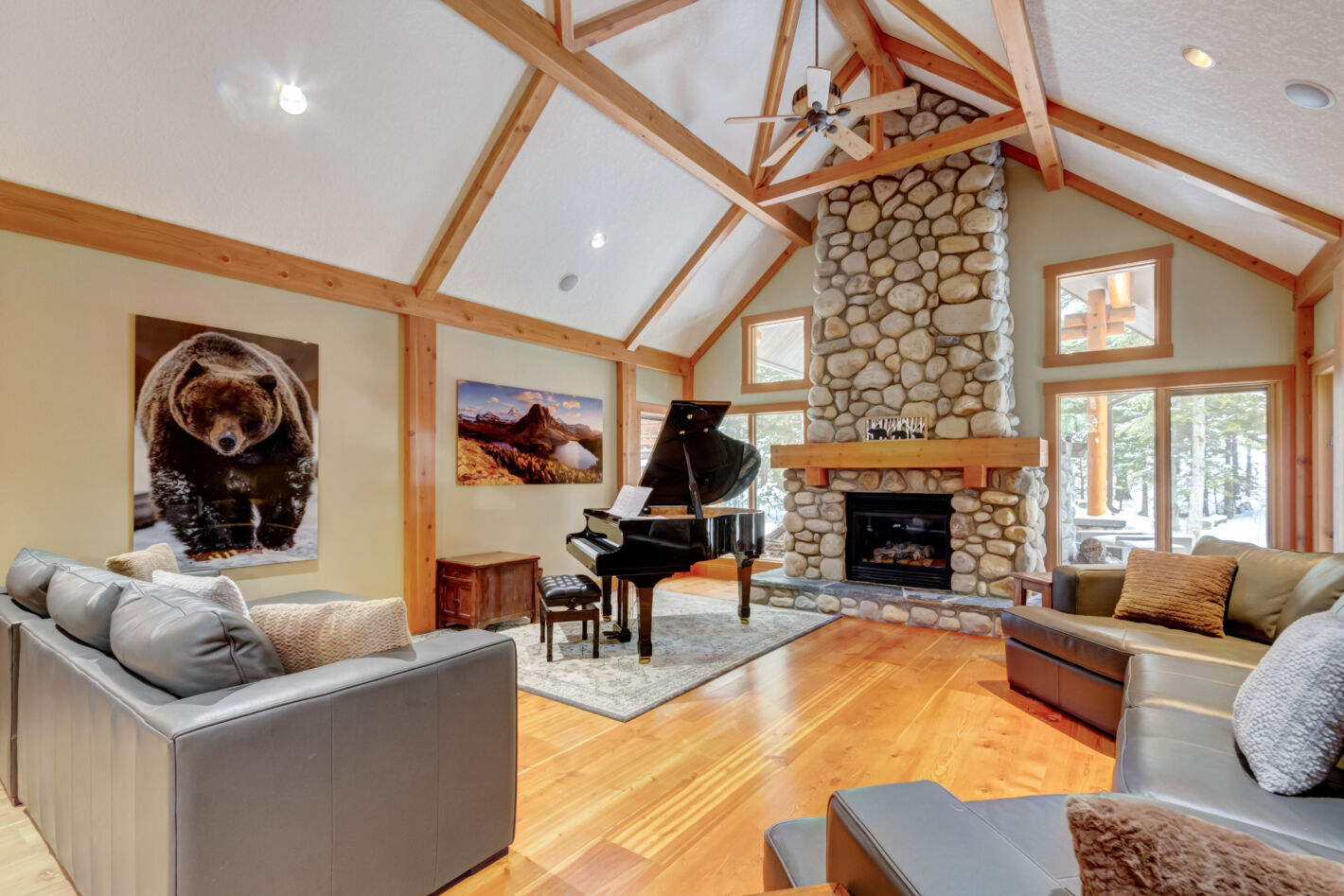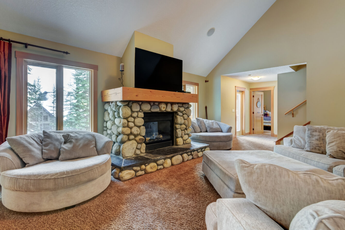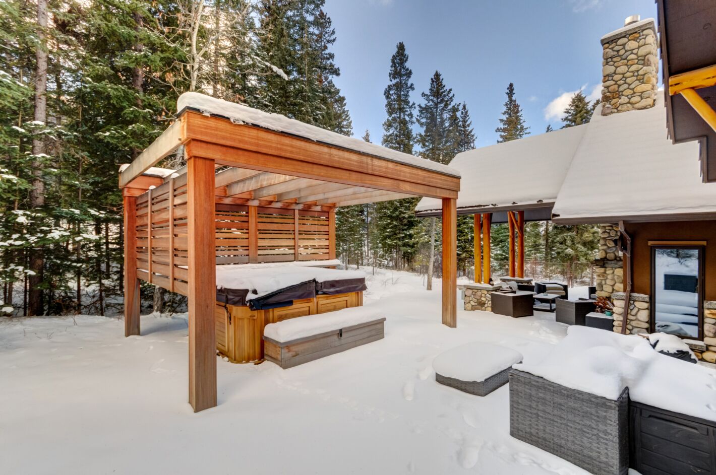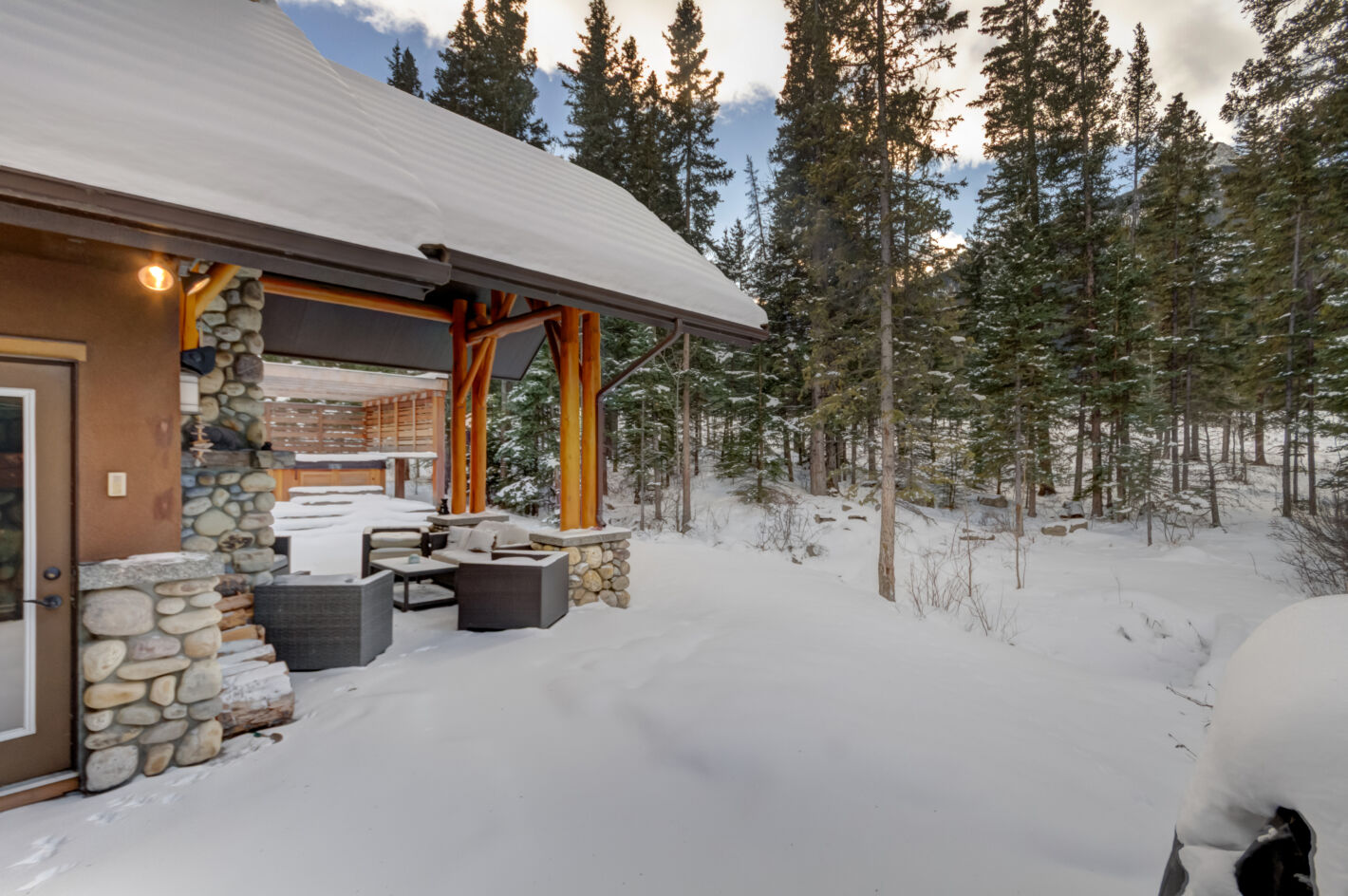 This one-of-a-kind, custom home will never be reproduced in Canmore. At 7,191 sq. ft, its floor area is without equal. Sitting on a double lot of 29,311 sq. ft, the proposition of owning a genuine “estate” home becomes clear. On approach, the bridge over a water feature is truly “of “ its environment. Once inside, the impact of the grand foyer cannot be overstated. This lovely approach is prelude to the great room, featuring soaring ceilings, massive windows and a signature stone fireplace. The master bedroom is surrounded by windows opening to the forest and a restful patio w/ pergola and hot tub. Additional bedrooms all with ensuites and decks are located on the opposite side of the house providing separation and privacy. Entertaining spaces are perfectly suited for family gatherings; come together or separate peacefully in an unparalleled manner. The thoughtful, timeless mountain design creates an ambiance of pure serenity and luxury. Beyond the gourmet kitchen anchored by fine appliances & finishes, an outdoor, covered patio / fireplace brings the outside in & is perfect for groups large & small. Bringing the family “clubhouse” vibe to fruition is the incredible lower level. A sprawling family room, theatre, feature bar & bunkroom are ideal for kids’ sleepovers or any situation that calls for bringing the Clan together. Other amazing features come in the form of a dog run as big as most homes’ rear yards & a triple garage / workshop for toys, cars & any hobby you love. With land at a premium & build costs soaring, this example of early 2000’s sensibilities in space & style will never be repeated at this amazing value.